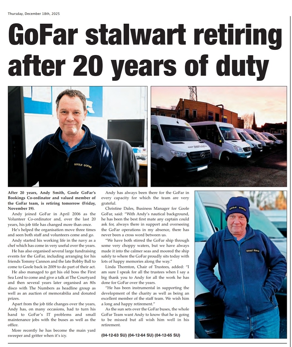 We were told, "GoFar do an incredibly valuable job in the Goole community and we are delighted to support them as best we can"